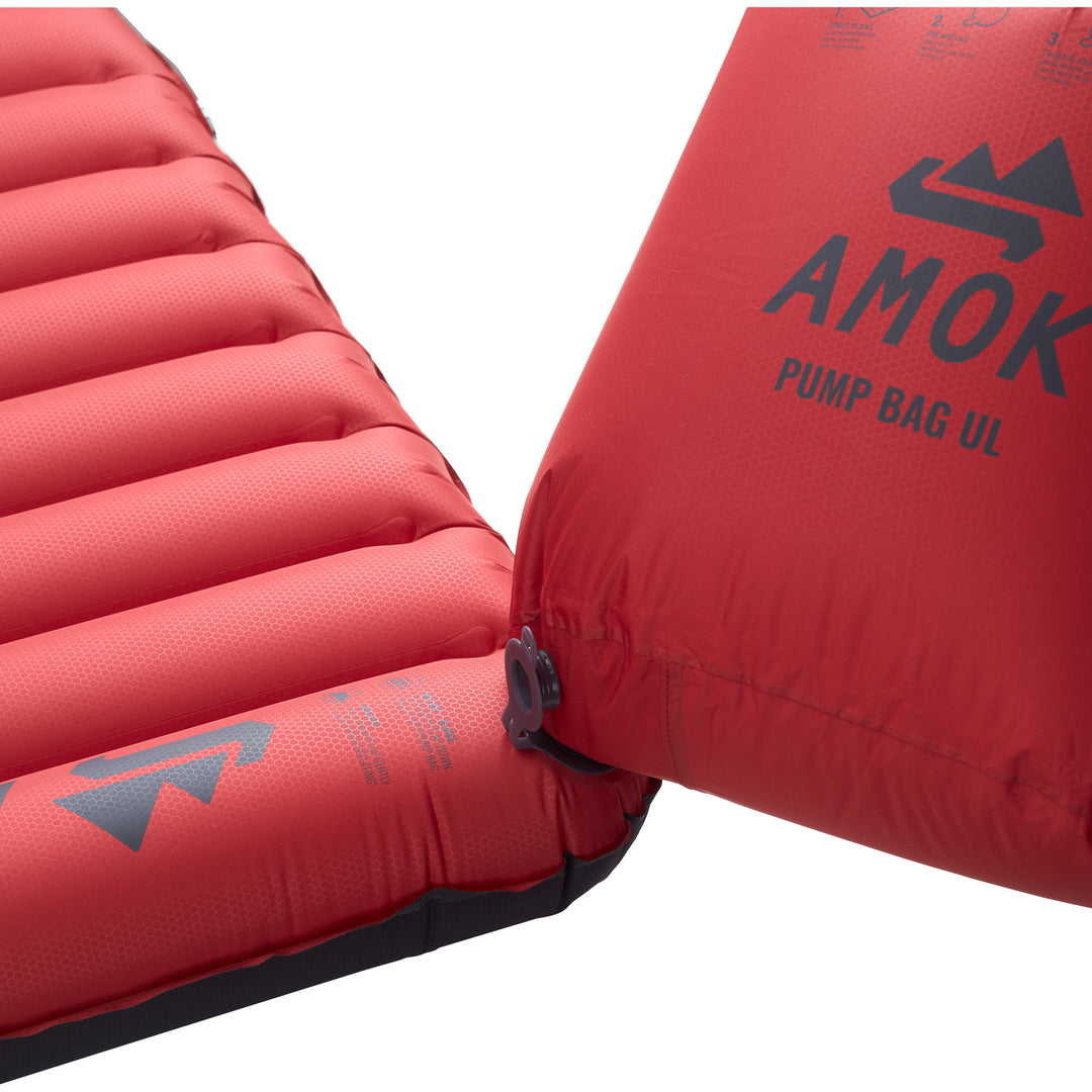 Pumpeposen festes i ventilen og brukes for å blåse opp underlaget. Åpne posen og fyll den med luft, deretter bretter du inn kantene og klemmer posen sammen slik at luften går gjennom ventilen og inn i underlaget. Dersom det er litt vind kan du enkelt "fange" luft ved å holde pumpeposen med åpningen mot vindretningen. Dersom det er vindstille kan du blåse inn i pumpeposen fra litt avstand, dette hjelper omkringliggende luft inn i posen.