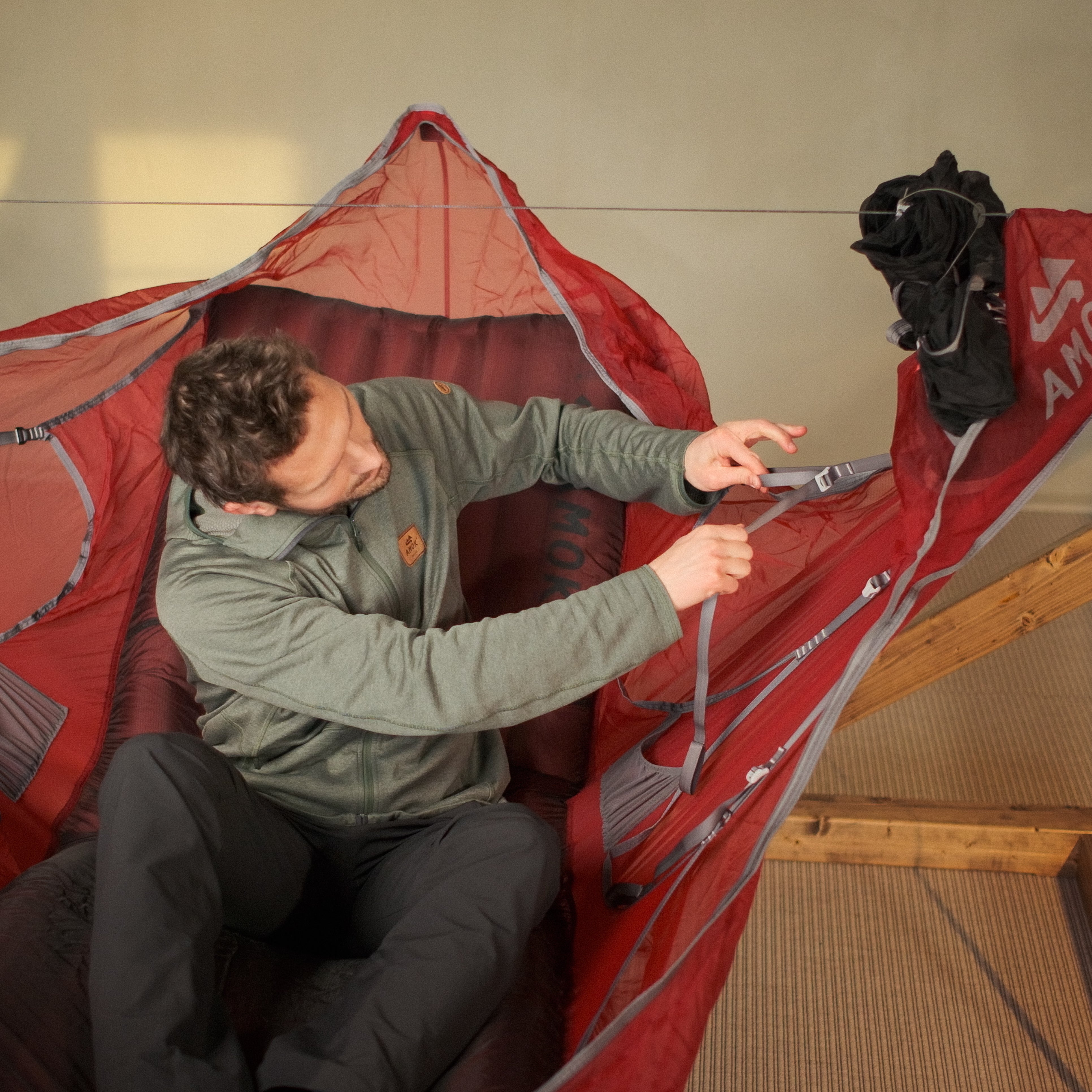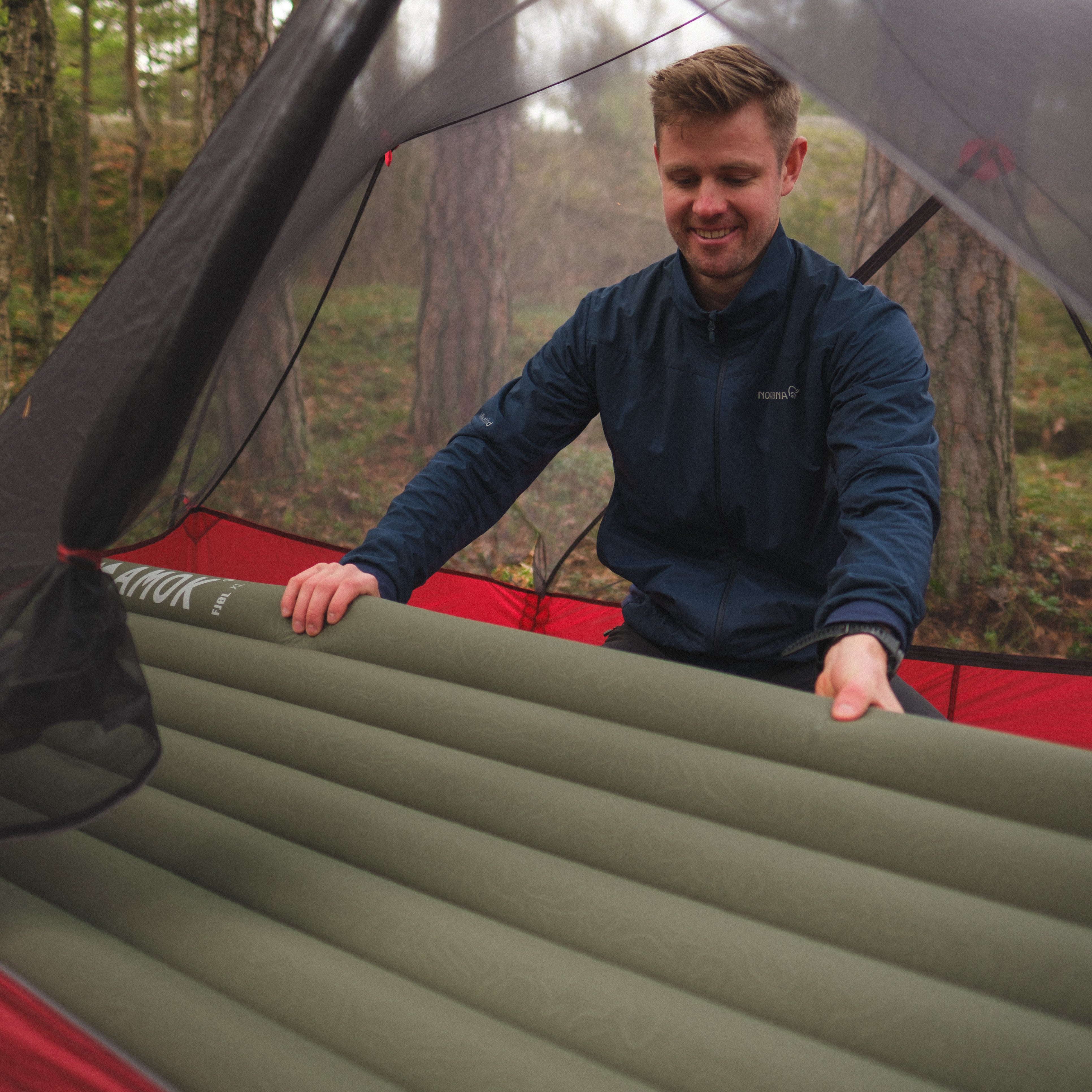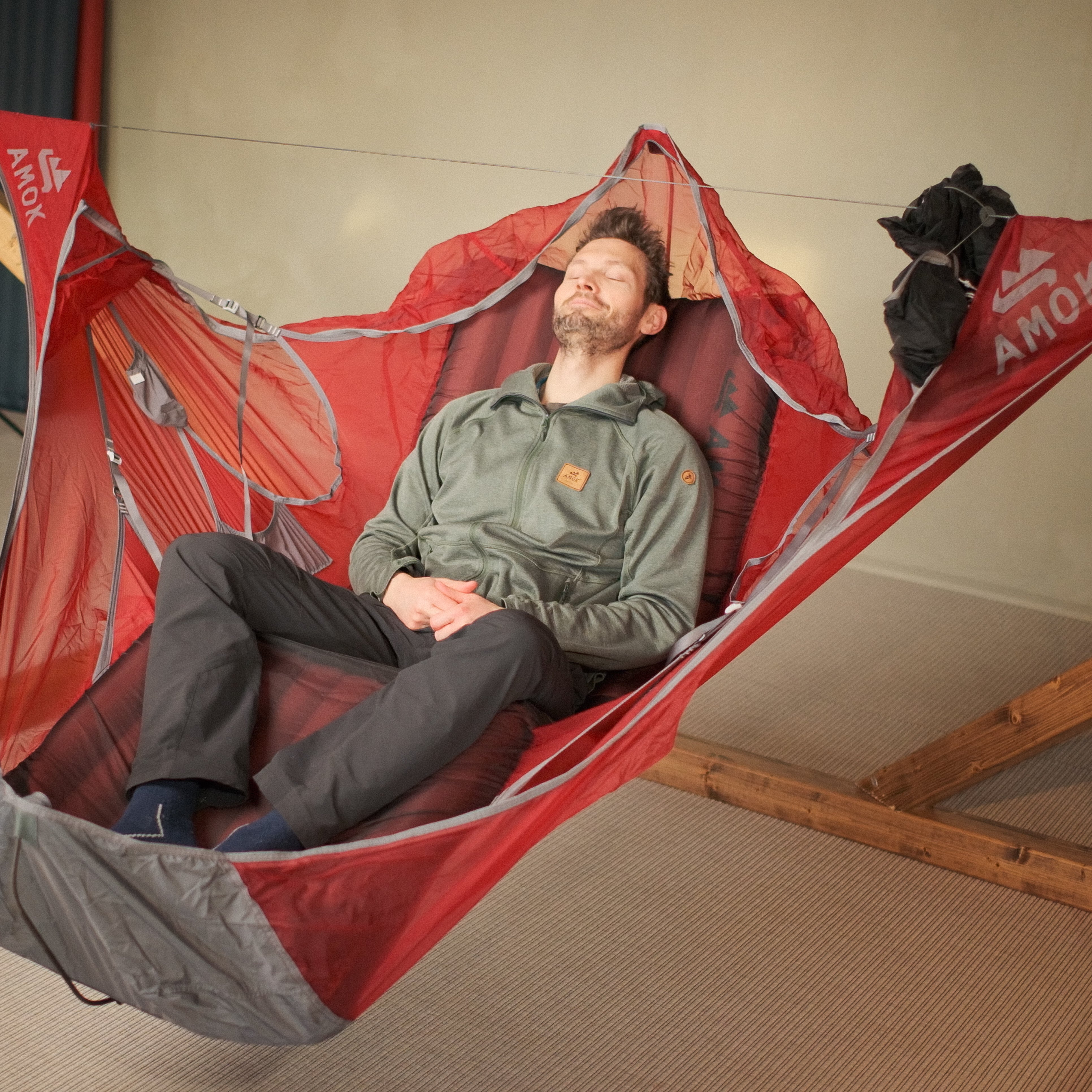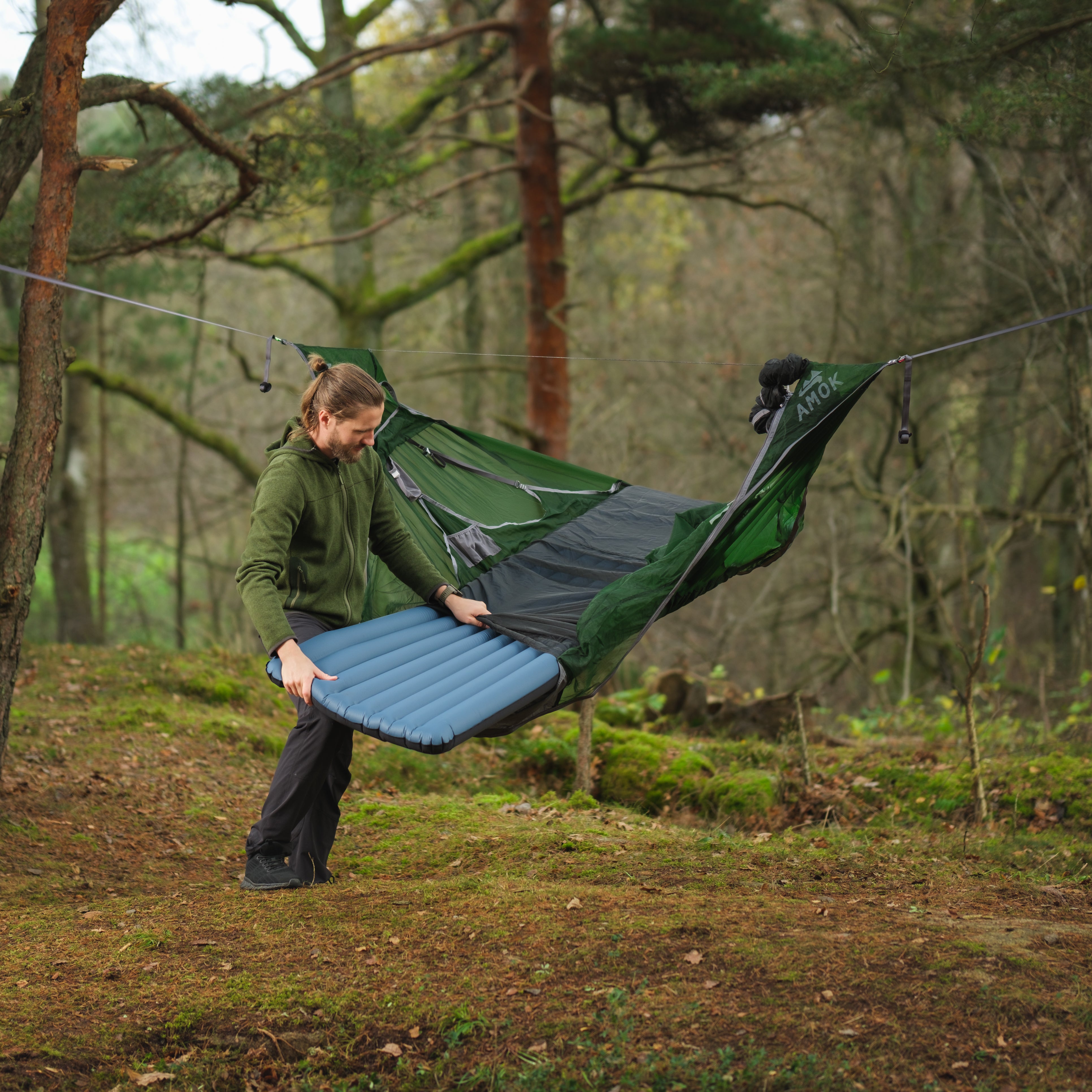 Draumr får en del av sin struktur ved hjelp av et liggeunderlag, som gir en flatere, mer komfortabel og romslig liggeflate enn tradisjonelle hengekøyer. Våre liggeunderlag er godt isolerte og 9 cm tykke. Du holder deg god og varm, samtidig som køya og liggeunderlaget former seg etter kroppen - som en overmadrass!