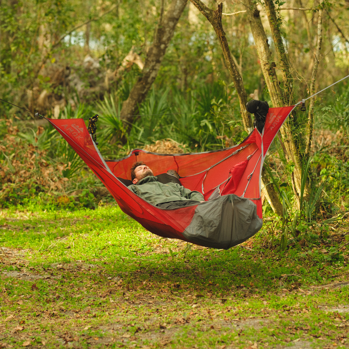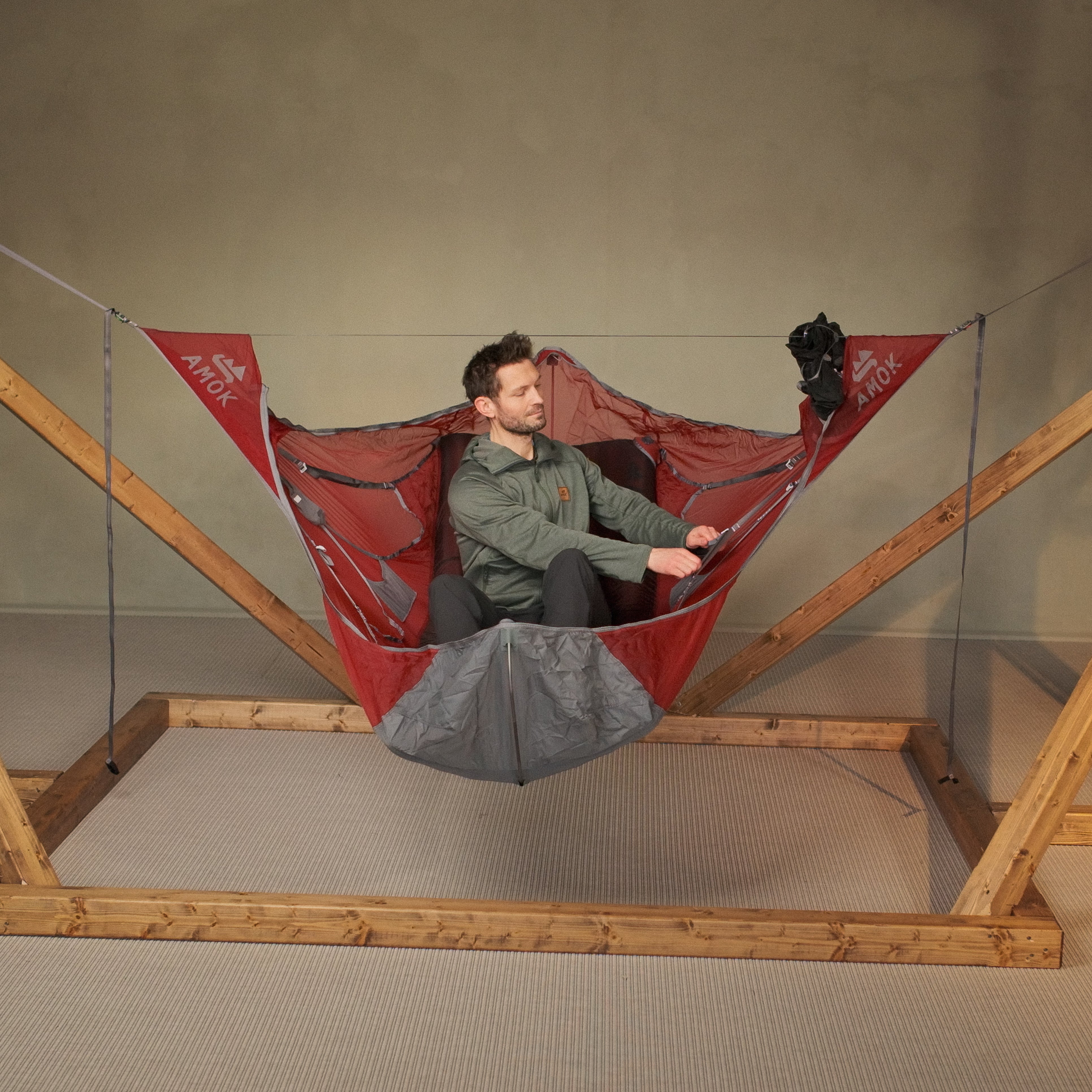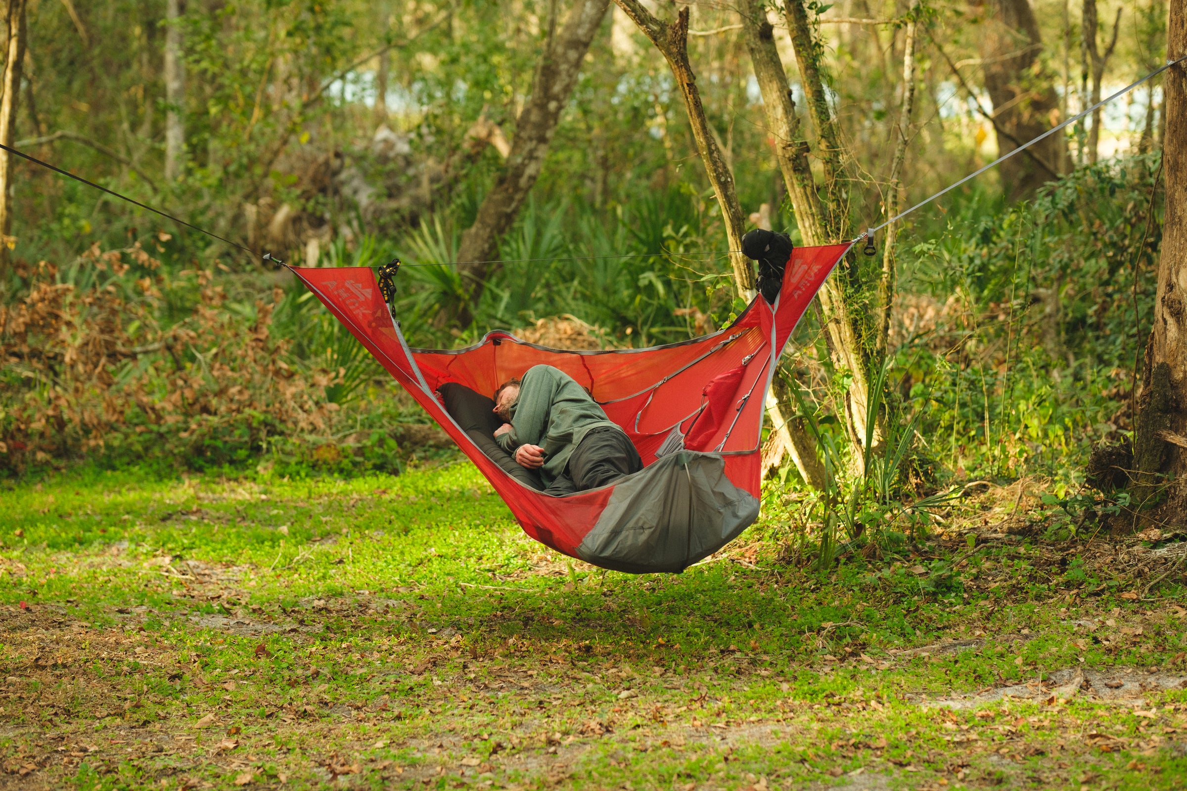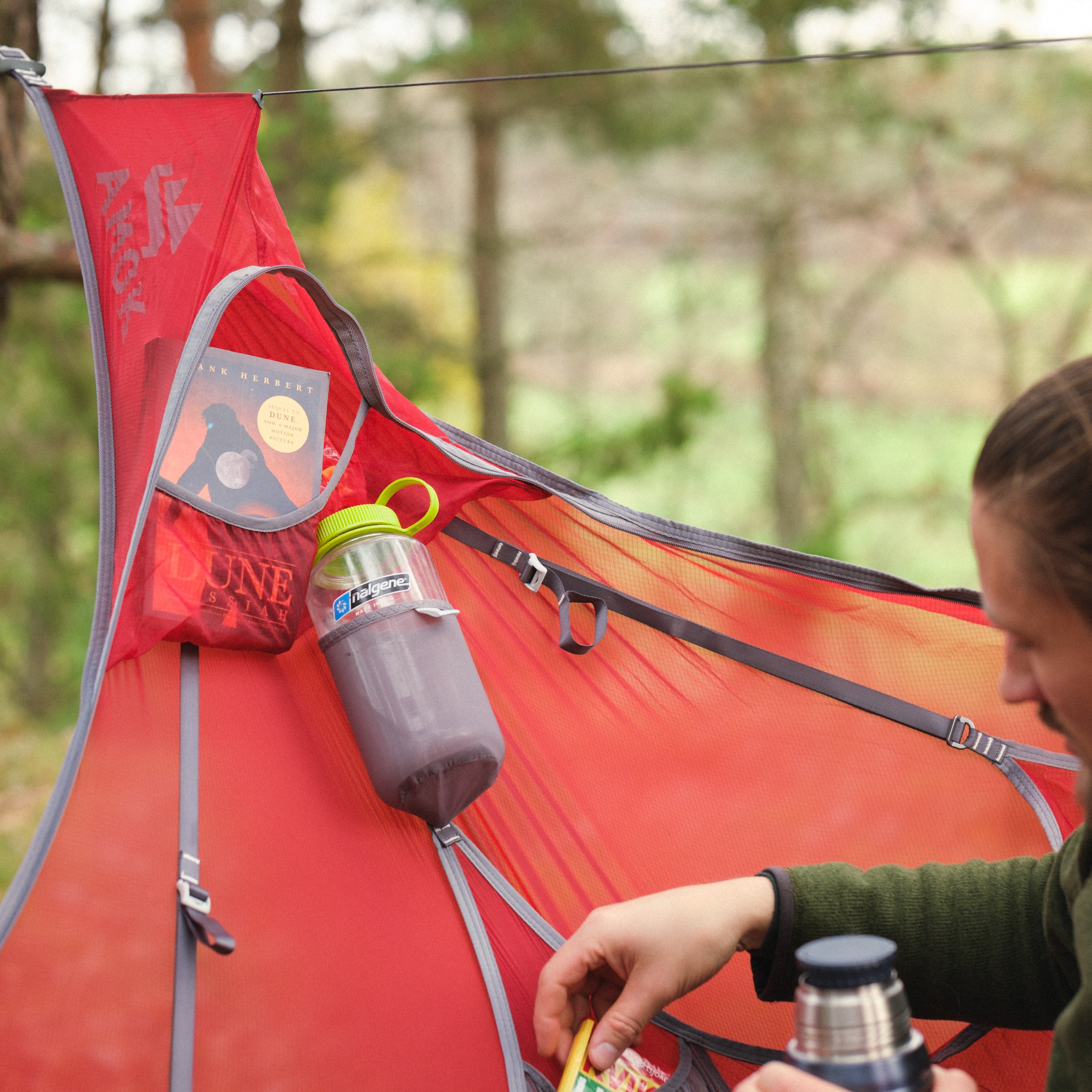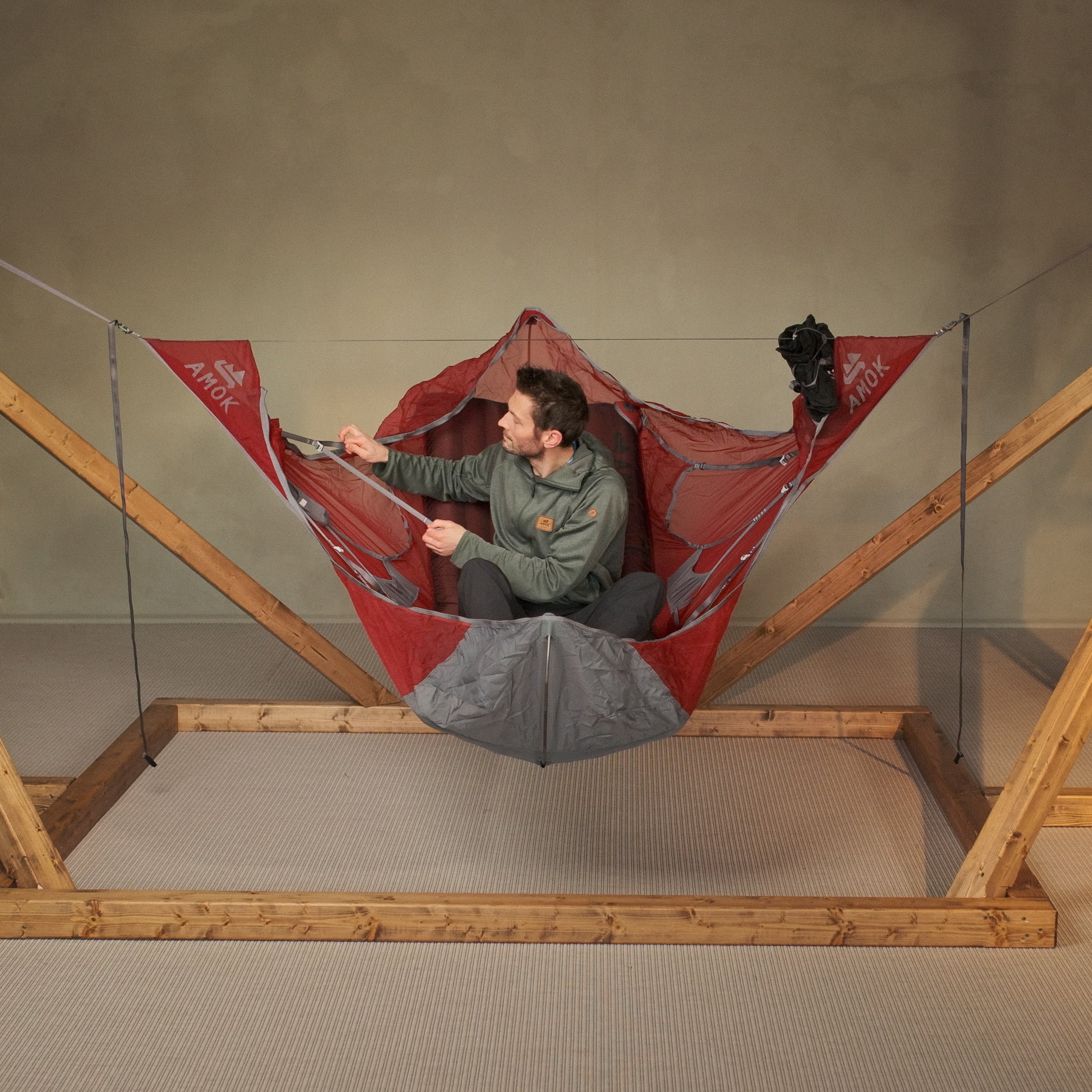 Draumr får en del av sin struktur ved hjelp av et liggeunderlag, som gir en flatere, mer komfortabel og romslig liggeflate enn tradisjonelle hengekøyer. Våre liggeunderlag er godt isolerte og 9 cm tykke. Du holder deg god og varm, samtidig som køya og liggeunderlaget former seg etter kroppen - som en overmadrass!