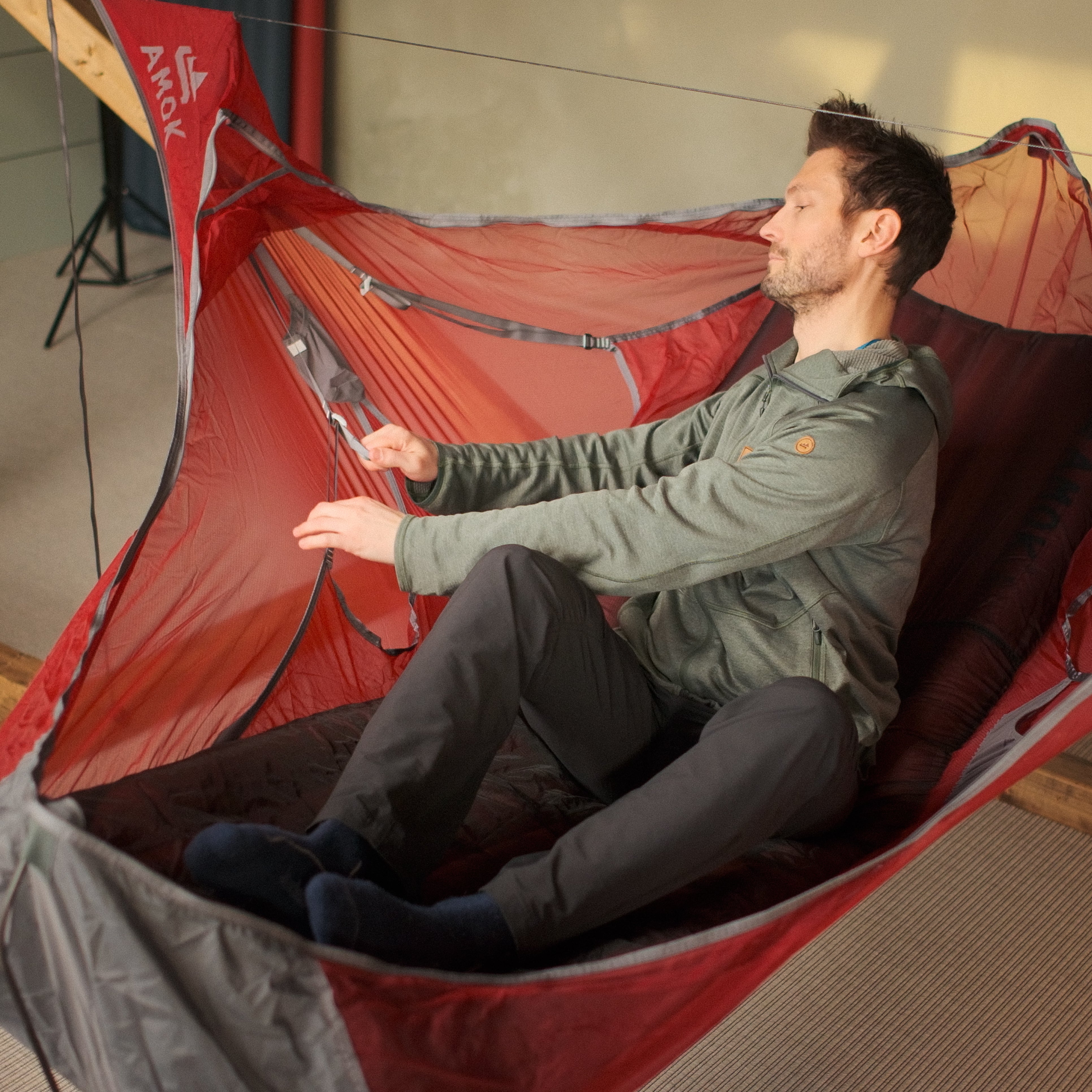 Her må du prøve deg litt frem for å finne den metoden som passer best for deg. Ta en titt på denne videoen for litt inspirasjon: Hvordan komme inn i din Draumr hengekøye
