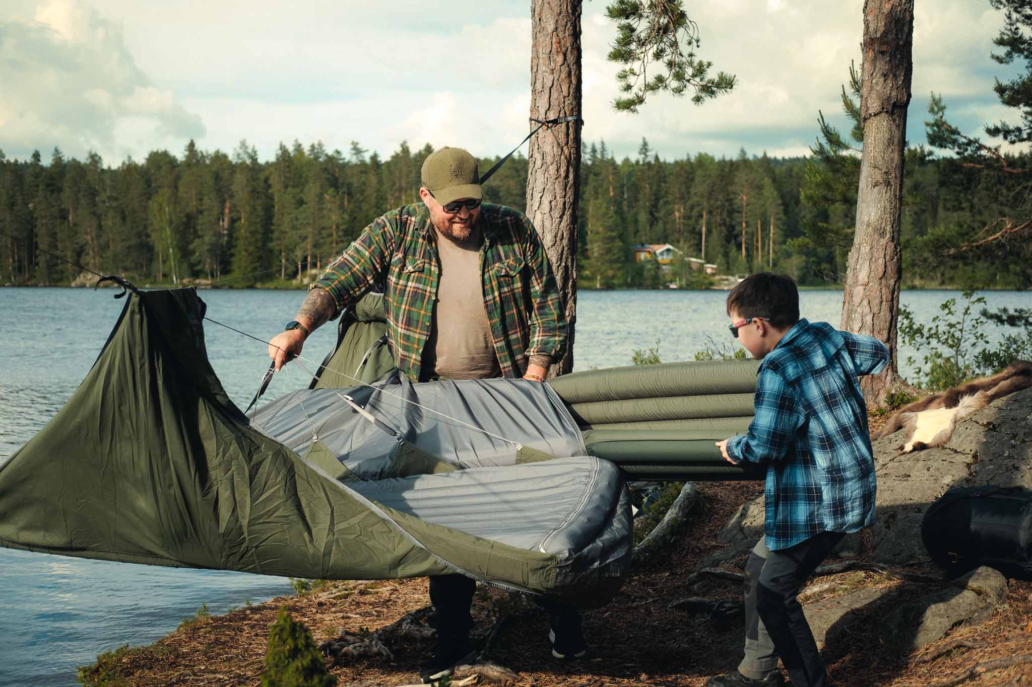 Det vil selvsagt finnes enkelte par eller venner der begge er over 190 cm. Disse kunne ha fått ekstra plass i en Draumr Double XL, samtidig som vi mener at det går i en Draumr Double. Antallet dette gjelder, og målgruppen for Draumr Double, gjør at vi nedprioriterer disse for å sørge for at flest mulig får en felles opplevelse som er god, samtidig som vi hindrer at veldig mange må kjøpe ekstra liggeunderlag i XL-størrelsen. Vi er ikke de eneste som produserer LW-underlag, så alle dere som har et egnet LW-underlag fra Exped, Mountain Equipment og Big Agnes med flere - kan benytte dette i Draumr Double.